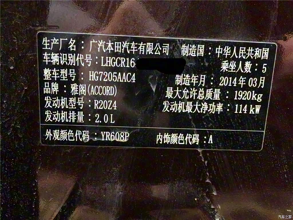雅阁 2014款 2.0L LX 舒适版